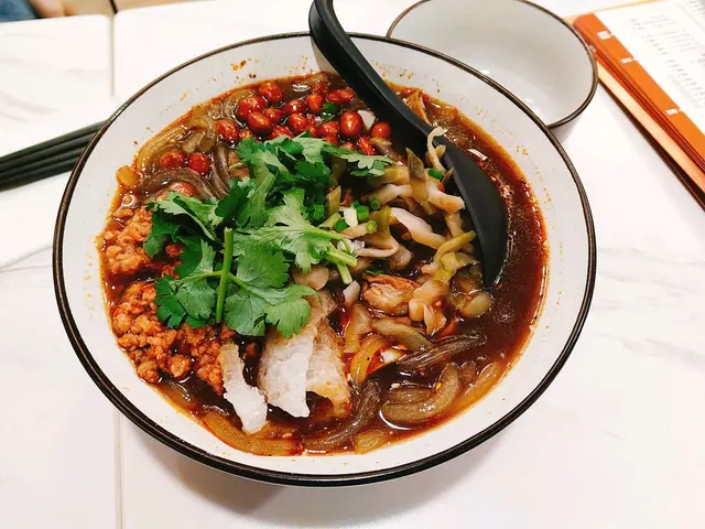 酸辣粉$29,基本配料十足,有榨菜、肉碎、花生、蔥花、芫茜等,有辣度麻度酸度選擇,可以再加餸。我地加左豬皮$8 豬大腸$8 鮮腐竹$6,由於加左底$9 ,所以酸辣粉顯得特別大碗,店員貼心主動地俾個碗仔我地分享。薯粉透明滑身,酸辣開胃。