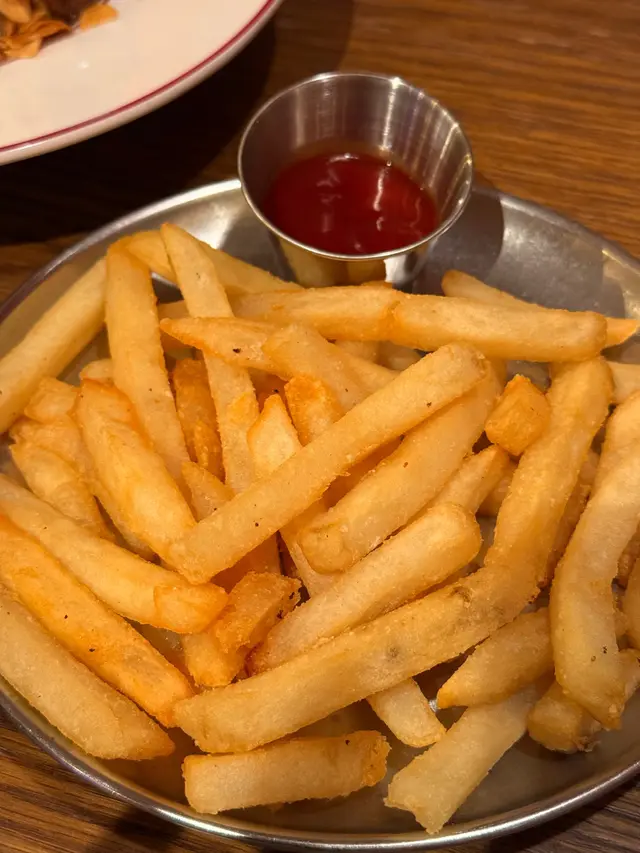 • 炸薯條:外脆內軟,簡單撒啲鹽已經好夠味,配杯飲品就 perfect!