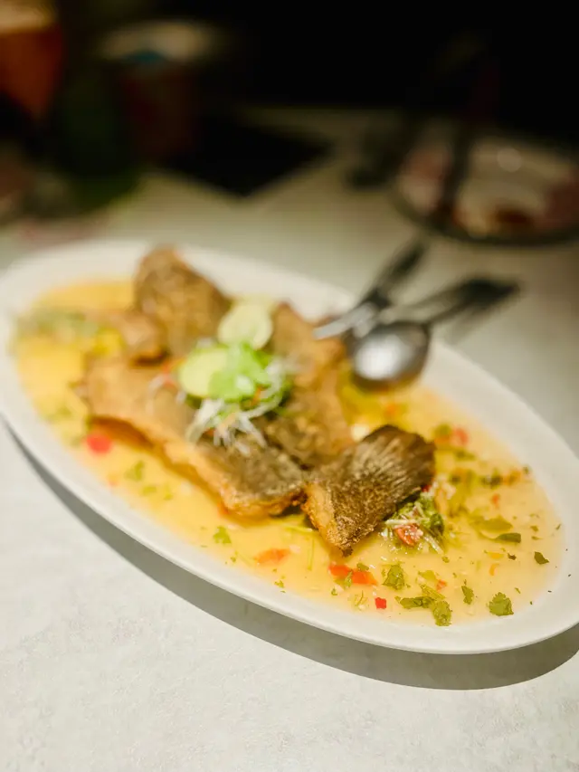 唔係得個樣嘅餐廳 咀刁公主等级22024-07-28258 views Follow 其實呢間餐廳之前都食過兩次lunch, 已經錯得唔錯, 咁啱有朋友返香港又話想食泰菜晚餐,所以就book呢間試吓佢哋d晚餐啦。首先叫咗個香芒果青木爪柚子沙律, 味道正常可惜真係太少,再嚟個外脆內軟嘅紅磚豆腐👍🏼, 主菜真係不得不講吓隻酸辣脆皮手撕雞,好香嘅香茅味配上個皮脆到薯片咁嘅雞皮同一d都唔鞋嘅鷄肉,少少酸辣,-d都唔膩,絕配,好味👍🏼,重要其實半隻已經好大份,真正令人印象深刻回味。 另一主菜香烤筍殼魚,-樣皮脆肉嫩, 唔會烤過火, 配上酸辣汁更加將個魚鮮甜味帶出,我哋成條連個頭都食埋。 總括嚟講,我哋一至認𤔡呢間餐廳d餸菜係有驚喜, 重有好多餐牌入面嘅菜都想試, 個朋友已經約定臨走前再食多次。 The above review is the personal opinion of a user which does not represent OpenRice's point of view.LikeShare唔係得個樣嘅餐廳 Mue Mue https://s.openrice.com/QrLT00L1L00Report Post Ratings4Taste4Decor4Service4Hygiene4ValueDate of Visit2024-07-23Dining Method堂食Spending Per Head$400 (晚餐)