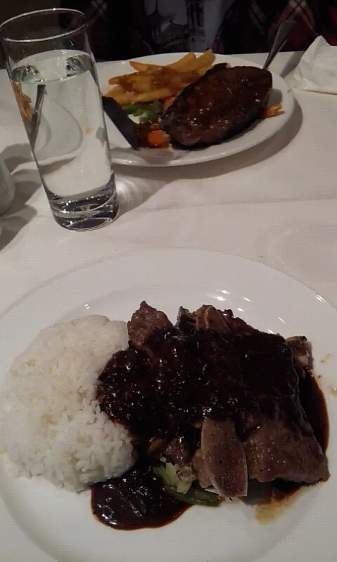 之後就上左個飯,朋友据美國肉眼扒,我就据牛仔骨,d黑淑汁幾好味,但d牛仔骨就少肉左d,