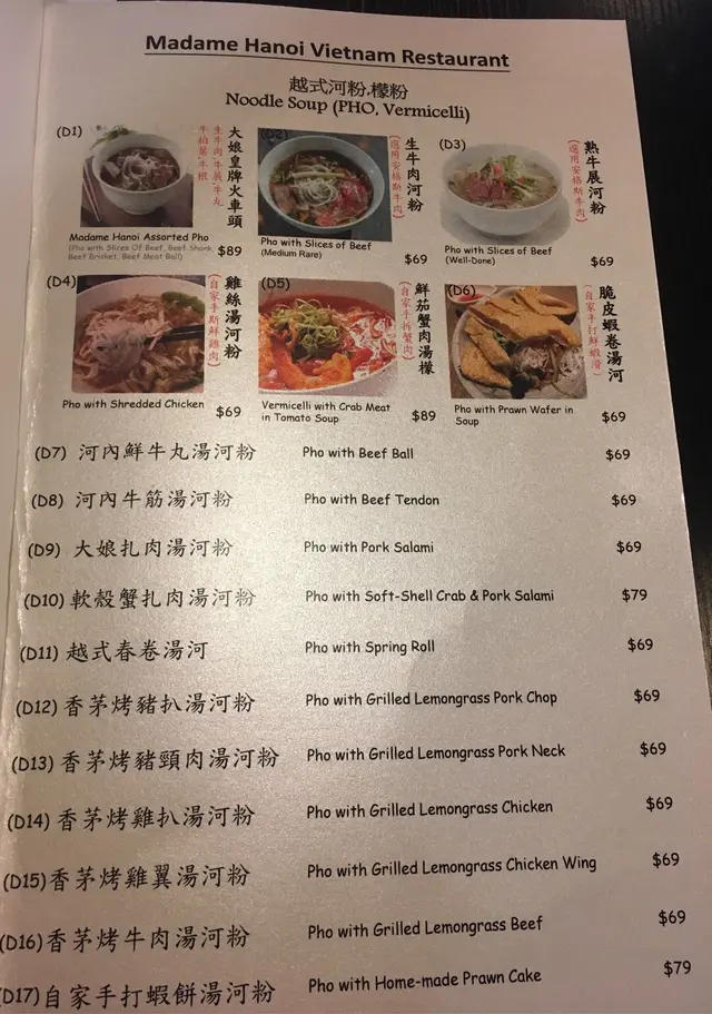 唔錯的越南菜 16j等级22018-05-13161 浏览 关注 想食越南菜,見呢間評語唔錯,特地來一試。食物味道唔錯,但又未去到超好味既程度。我地兩個人叫左三道菜加兩杯飲品。大娘皇牌火車頭$89講到越南菜,當然要食河粉啦。因為鍾意食牛,叫左個大娘皇牌火車頭,有生牛肉,牛展,牛丸,牛柏葉,牛根。但有少少失望,湯有點淡,而河粉就有點軟,而牛肉食材方面就普通。大娘皇牌三文治$49大娘皇牌三文治, 裡面夾左豬頸肉,d豬頸肉應該有烤過,幾好味,個法包就好脆。炸蝦$99呢個炸蝦都值得一讚,蝦肉好彈牙,味道好好👍🏻左邊既係蓮子龍眼冰, 呢個推薦大家點,好足料,好多龍眼同蓮子,好好飲😋右邊既係凍青檸茶,青檸味幾出,所以幾清新。職員服務態度ok, 但有點chur, 會積極叫你點菜。1以上食记乃用户个人意见 , 并不代表OpenRice之观点。赞好分享唔錯的越南菜 河內大娘越南餐廳 https://s.openrice.com/QrLT0IdyN00检举 张贴 评分4味道3环境3服务4卫生3抵食推介美食大娘皇牌三文治$49炸蝦$99用餐途径堂食人均消费$170