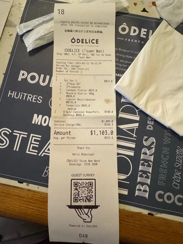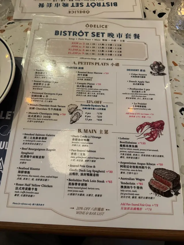 上星期同朋友去咗荃灣Odelice試吓佢哋個二人晚市套餐,環境真係幾靚,法式bistro feel,唔會太拘謹但又有啲情調,啱晒想chill住食餐好嘢嘅人。