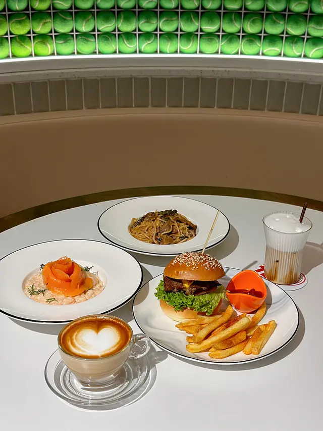 商場指示清晰咗,好易就搵到間餐廳。呢度空間感好大,仲有個幾Cute嘅網球牆🎾,好似話用咗一千個網球整㗎。難得坐到個靚位,一定要打卡📸。