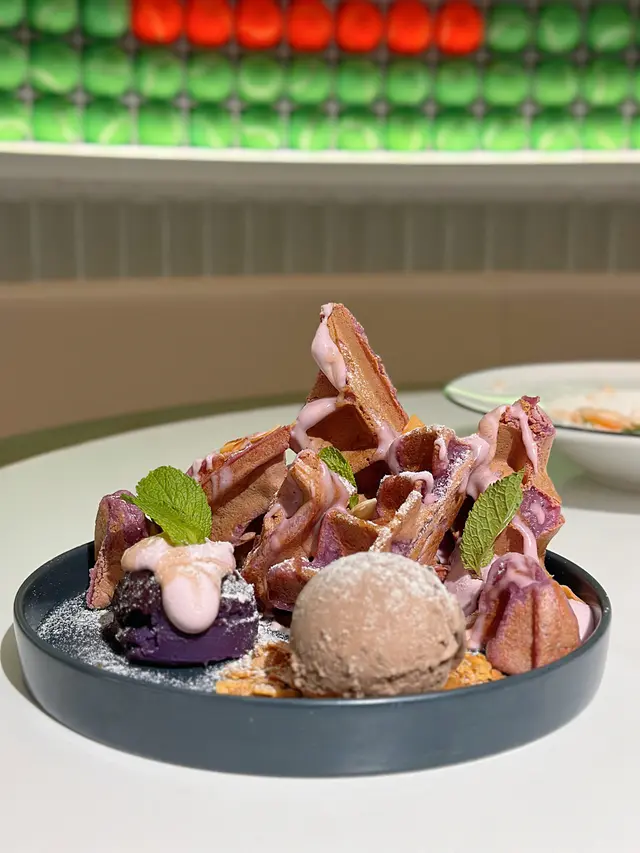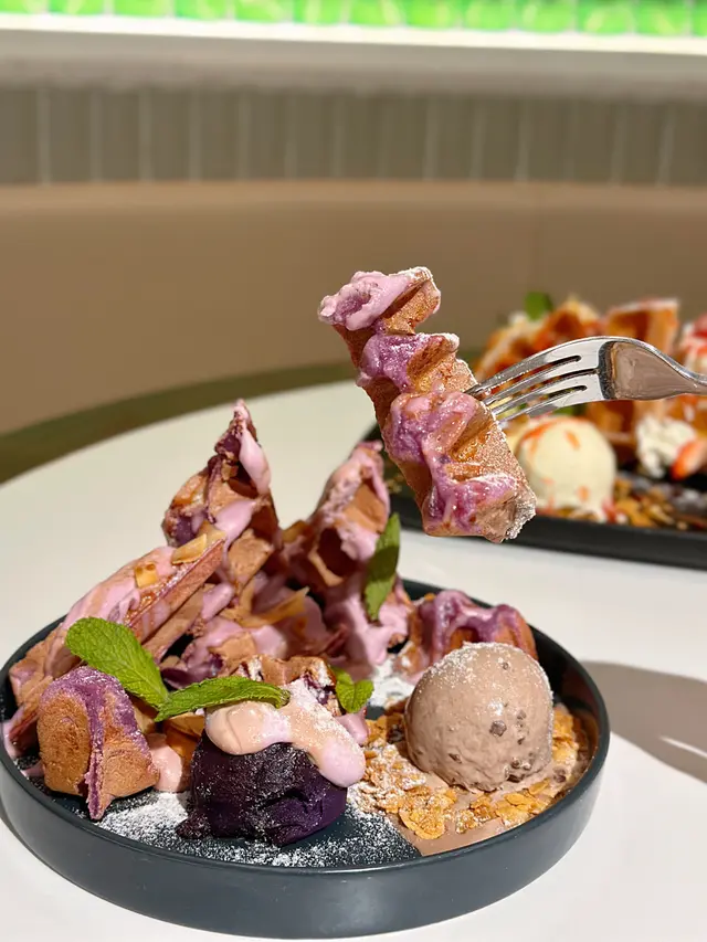 💜 紫薯麻糬窩夫配雪糕