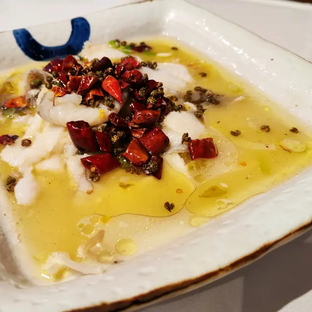 酸菜魚片滑嫩,不帶魚腥味,搭配酸菜的爽口,湯頭淋上花椒和辣椒,十分惹味。