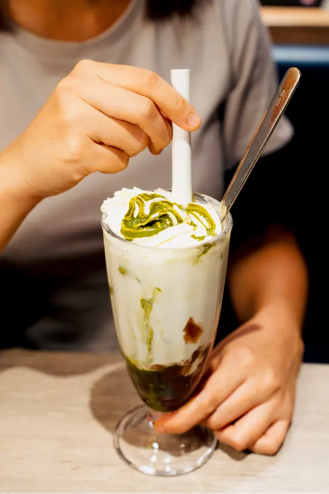 比起傳統港式紅豆冰椰香更重,椰奶與抹茶味道分明,紅豆甜而不膩,頂層再加上大量忌廉,口感香滑綿密。