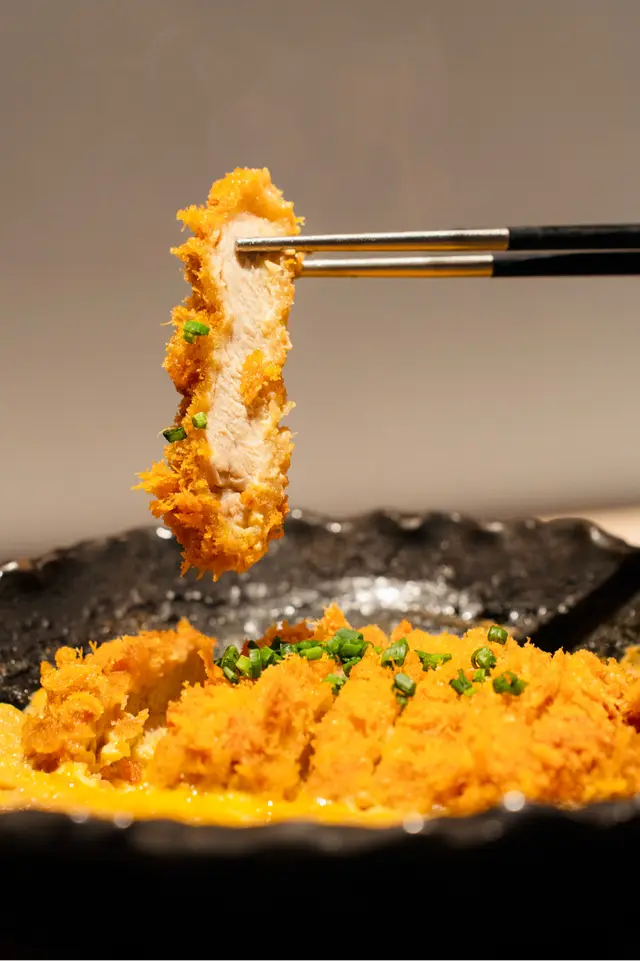 嚴選日本豚肉製作,肥瘦比例適中。外層炸至金黃酥脆,肉質軟嫩多汁,厚切豚肉與洋蔥炒滑蛋及甜醬油完美配搭,味道層次豐富。