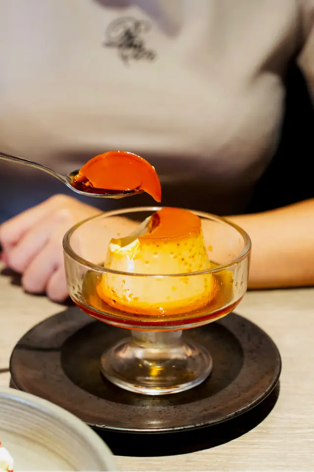 布丁質感軟滑帶點彈性,蛋香濃郁,與黑糖的獨特香氣和甘甜形成絕妙對比,回味無窮。