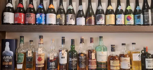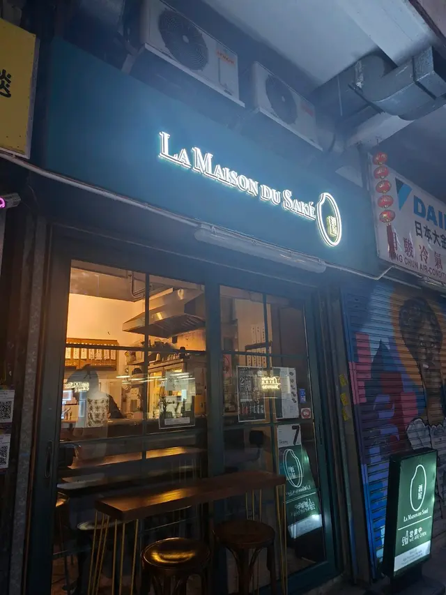 黃昏時分,兩旁的修車舖已經關了,對面利奧坊的大屏幕照得閘上的塗鴉忽明忽暗。清酒吧只有幾把高腳椅,吧台佔的地方較多,自成一格,暖光打在木桌和拼花瓷磚上,顯得格外柔和。