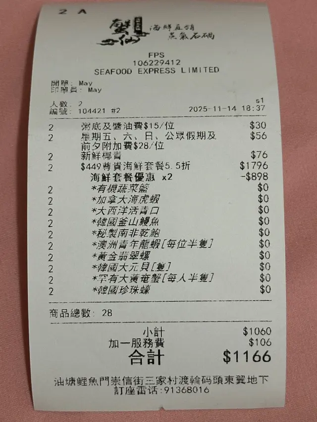 叫了尊貴海鮮套餐$449一位: