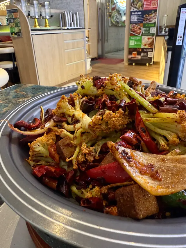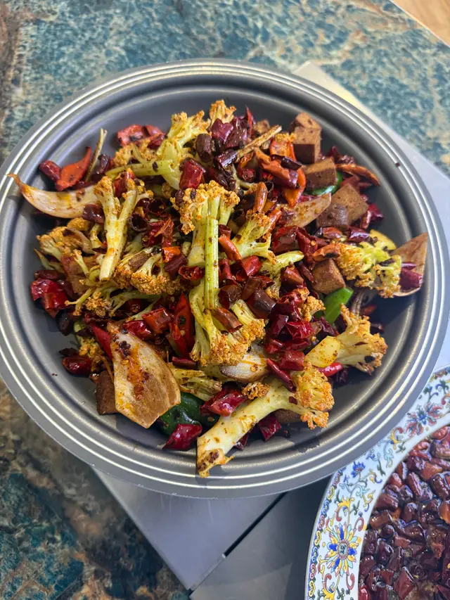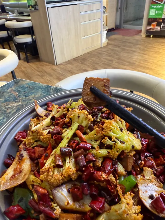 一上枱令人震惊,份量十足,火紅色彩。椰菜花的清脆、豆乾口感軟淋入味,加上香辣的調味,讓這道菜在味道上非常引人注目。但辣度稍高。
