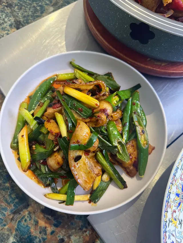 回鍋肉算是川菜代表作之一,肥瘦相間的豬肉,非常薄切,烹調到外焦裡嫩,搭配上青椒和洋蔥等,香氣四溢。