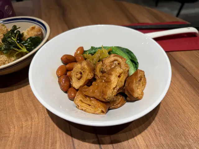 點了他們的招牌紅燒腱心牛肉麵,整體感覺真的是驚艷極了!🍜 這碗牛肉麵的湯底相當濃郁醇厚,明顯能感受到是用牛大骨慢火熬煮多時,湯頭帶著自然的甘甜與豐富層次。特別的是,加入了23種中藥材調味,香氣濃厚卻不苦澀,讓整體口感更顯厚實。🔥微辣的味道剛剛好,帶出牛肉的鮮美,卻不會嗆鼻,十分適合怕辣又想嚐鮮的我。比起一般台灣牛肉麵,段純貞的湯頭真的獨樹一格,喝完令人回味無窮。🥢