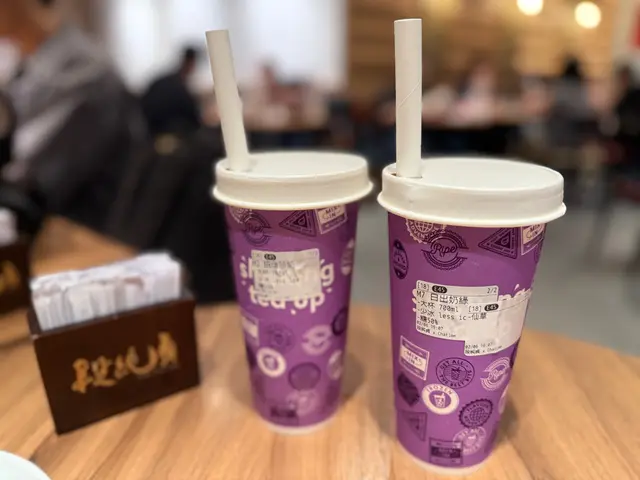 店門口還有日出茶太,點了他們的招牌珍珠奶茶以及日出奶綠加仙草,珍珠Q彈有嚼勁,奶茶香濃順口,仙草清涼解膩,完美收尾這頓美食。🧋🍃