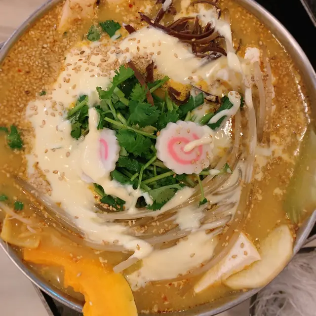 咖哩奶蓋鍋$94 配粉絲