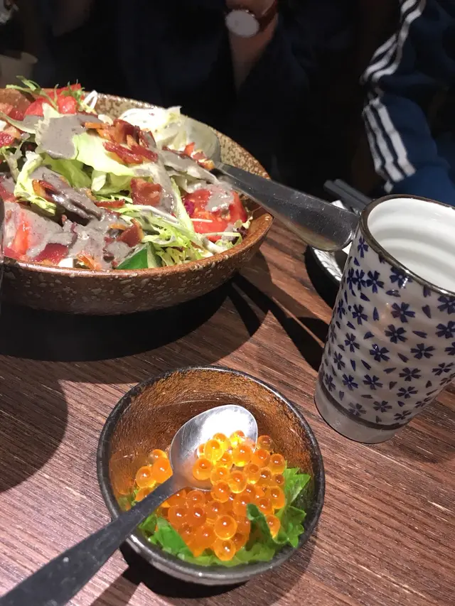 (黑芝麻汁煙肉沙律) 用料新鮮, 份量都算多。