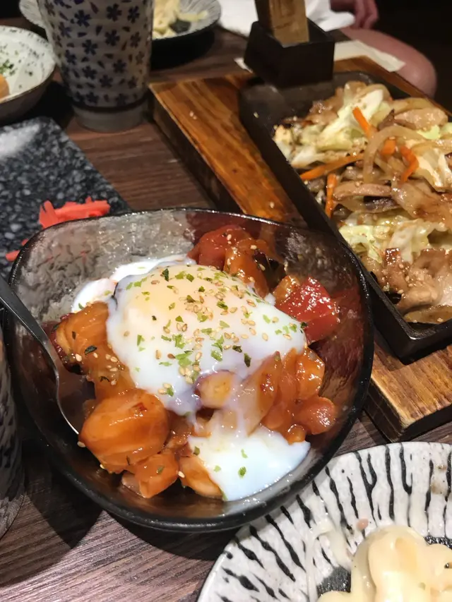 (薑汁豬肉野菜+什錦海鮮膾) 野菜有D普通, 食唔到薑味!  什錦海鮮膾細細兜, 但都幾高質, 加埋隻溫泉蛋撈埋好好味!