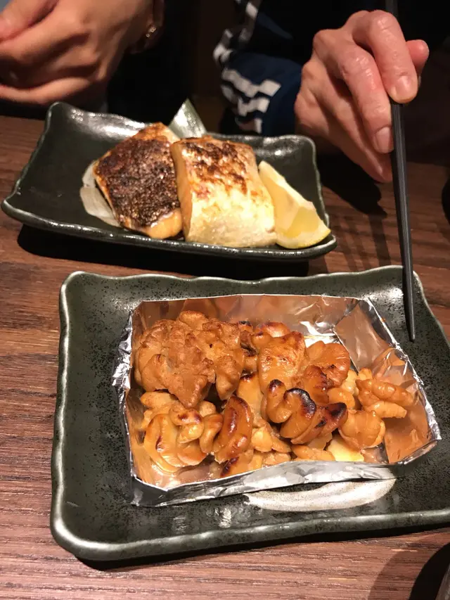 (牛油醬油燒白子) 我地見未食過白子, 就叫黎試下。原來白子係魚類既精巢,  有豐富蛋白質、維他命D, 日本人係當白子係女人美膚之寶架! 可能本身白子難入味, 食落好似冇乜味咁。