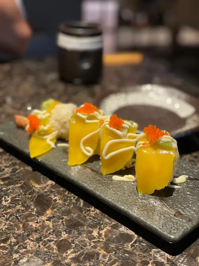 然後就到小食 第一款我地嗌咗芒果奇異蝦卷 有啲似天婦羅卷配一啲開胃酸酸地生果 食落生果中和天婦羅既油膩 好夾既組合❤️ 然後到明太子醬燒大啡菇 大啡菇係食日本成日會食既燒物 呢到配搭加咗明太子 佢既咸香加落個菇到好出色 最後一個黎既小食係土佐炸豆腐 呢個又係份量剛好兩個人share 外脆內軟 豆腐好滑好重豆味☺️