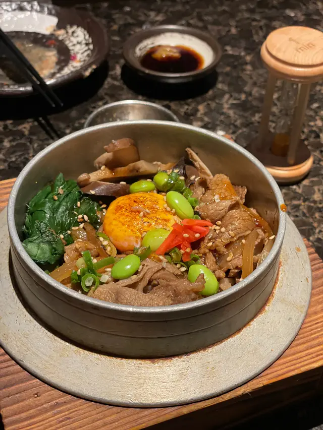 然後主食我地嗌咗岩鹽好出名既釜飯 我地揀咗和風牛肉釜飯 上枱時釜飯係仲未開蓋既 上枱後用沙漏計時一分鐘先開蓋食😛 店員教落食到啲飯咁上下就加入一齊上枱既個壺茶落去變成茶漬飯咁食 個釜飯配搭好好 牛肉加埋菇類同生蛋黃 味道剛好唔會太咸