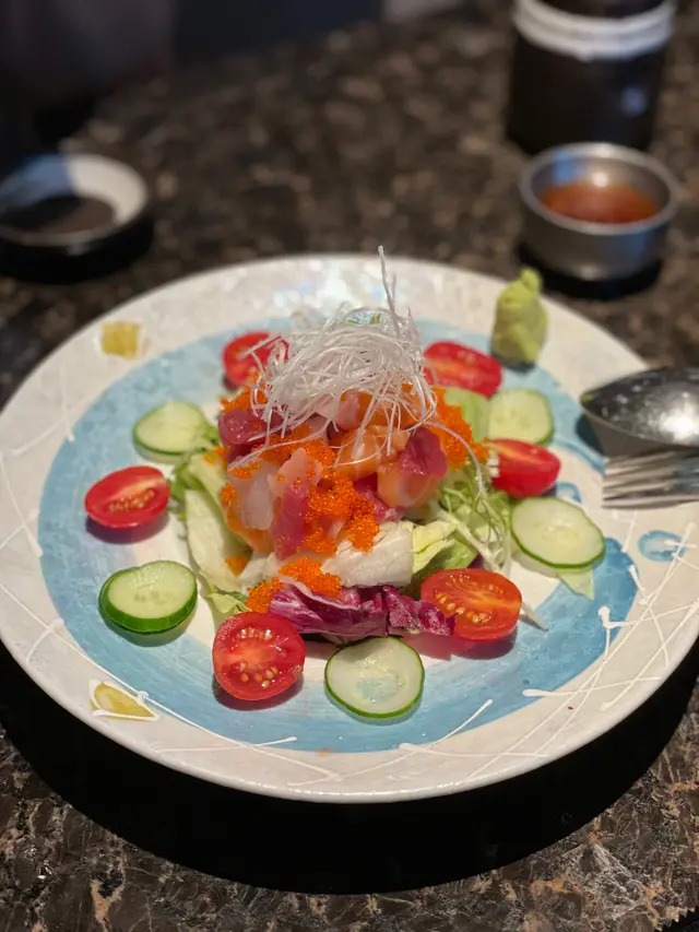 首先黎既係和風海鮮沙律 沙律個樣好色彩繽紛 見到都好開胃 而且份量岩岩好兩個人share就fit晒 入面有啲三文魚粒 食落好fresh