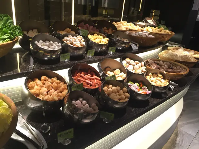 火鍋及前菜區-前菜有沙律、凍豆腐等。旁邊有不同的醬料以供選擇,大愛胡麻醬沾肉!火鍋材料區選擇多元化,有各種丸類(包括我最愛芝心丸仲有好得意既熊仔日式魚蛋);娃娃菜、生菜、冬瓜,粟米等數類菜類及菇類;烏冬、公仔麵、拉麵等。