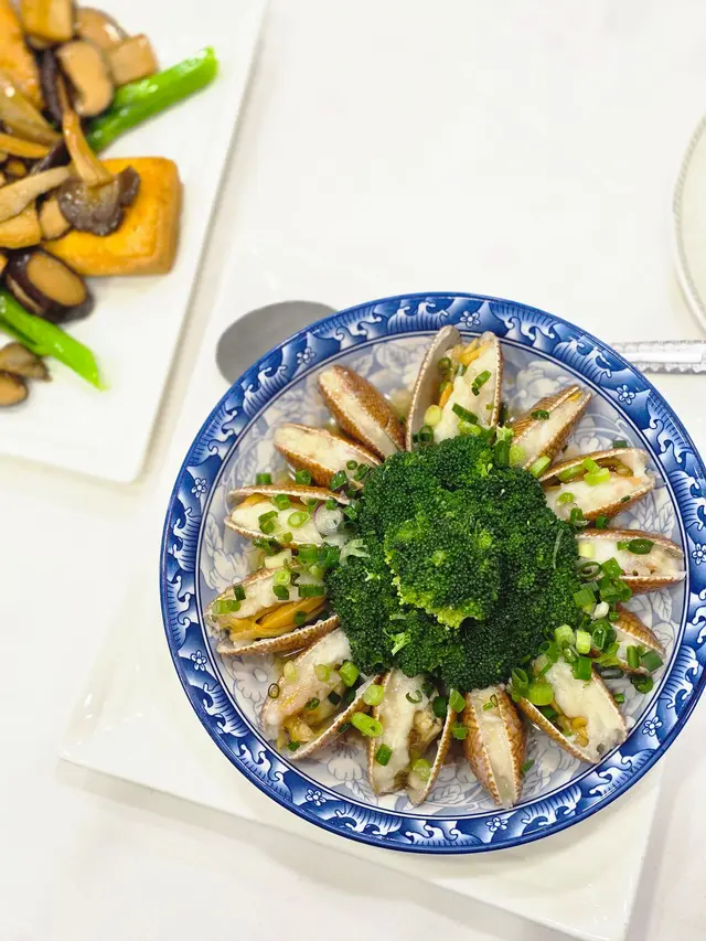 肥美蜆肉釀入蝦膠,整齊圓形排列,