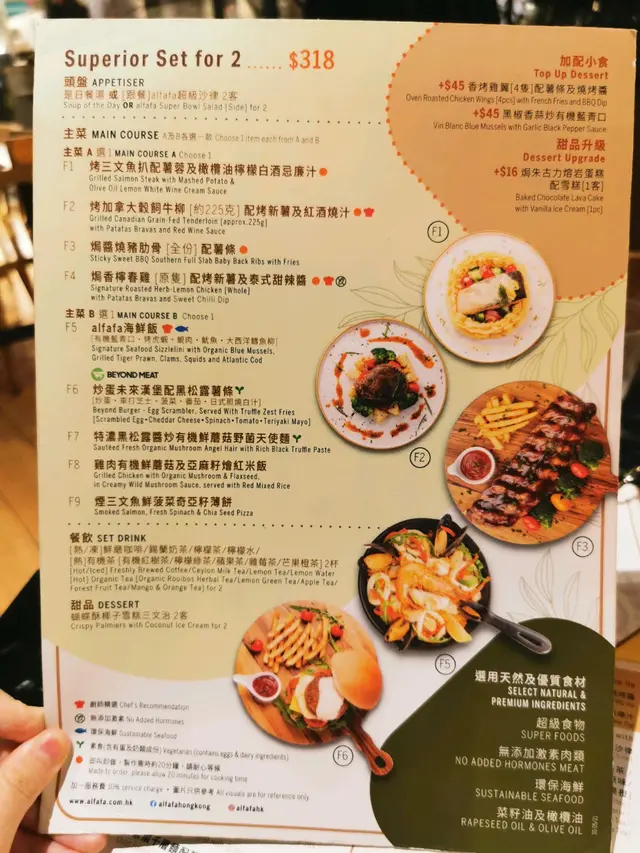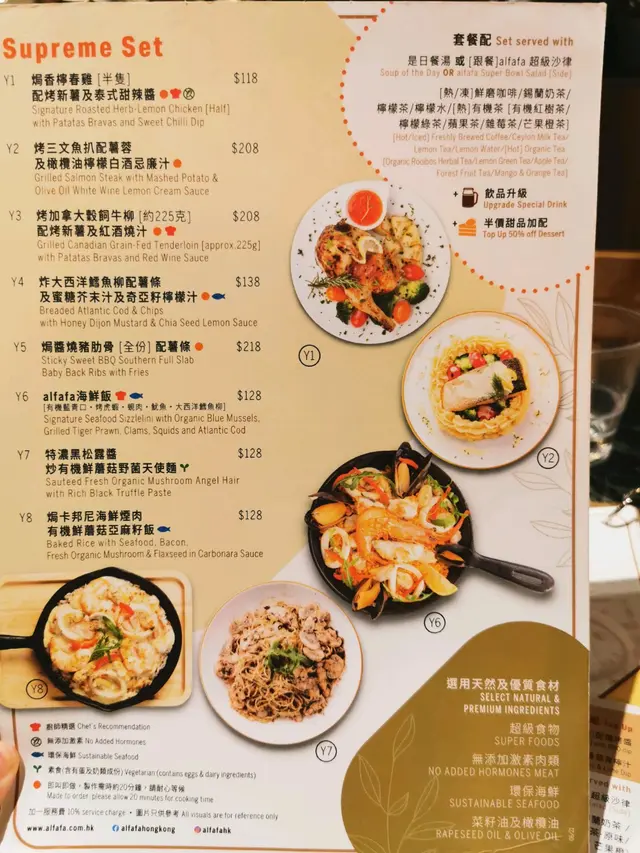 多樣歐陸套餐,菜單很豐富 聪明的笨猪等级42021-11-23456 浏览 关注 🌟🌟🌟大西洋鱈魚柳及有機鲜蘑菇配日式照燒炒意粉 $96鱈魚柳很嫩,意粉味道特別,像中餐的炒粉,吃了停不下来那種。但是整盤除了一片鱈魚和零散的蘑菇,其餘都是碳水炸彈💣沙律好吃,加了堅果片特別香👍錫蘭奶茶也不錯,丝滑濃郁我的沙律和小麵包吃了一半服務員就想端走,太没有眼力見了。。。。。。咋想的。。。。。。鱈魚柳很嫩,意粉味道特別,像中餐的炒粉,吃了停不下来那種。但是整盤除了一片鱈魚和零散的蘑菇,其餘都是碳水炸彈。$96好吃,加了堅果片特別香。奶茶也不錯,丝滑濃郁。1以上食记乃用户个人意见 , 并不代表OpenRice之观点。赞好分享多樣歐陸套餐,菜單很豐富 alfafa (康怡廣場北座) https://s.openrice.com/QrLT0biL000检举 张贴 评分4味道4环境2服务4卫生2抵食推介美食沙律奶茶用餐日期2021-11-18用餐途径堂食人均消费$106 (晚餐)
