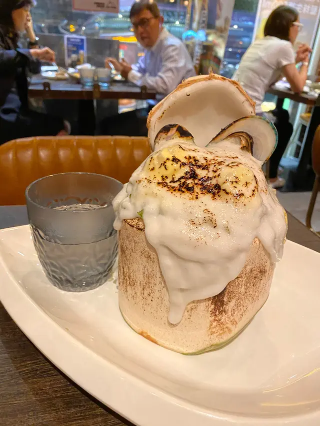 第三個係椰子焗海鮮飯,估唔到佢有跟埋杯椰子水,椰子水好清甜。個飯入邊係炒飯底,而且亦都好多海鮮,有好多蝦青口帶子。個椰子味都好香好甜,係一個好有特色嘅飯。
