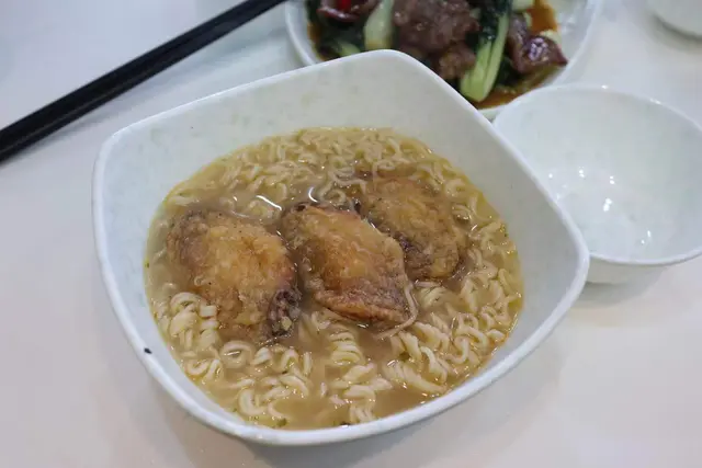 我就點左個湯麵,雞翼出前一丁,一份有三隻雞翼,下次我會叫另上,唔洗浸淋雞翼嘛。