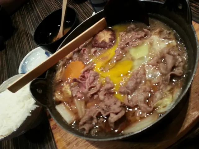 先來前菜有“薯仔沙律”, 薯仔有3大粒 ,幾淋,如果沙律醬多d會再好d,“蒸蛋”都幾滑,入面仲有蟹柳,冬菇同雞肉,都係大大粒,同埋“面鼓湯”d豆腐都好滑,個湯就比較淡。主菜嚟喇。生蛋嚟到時已經爛了,所以賣相扣了分。牛肉好入味,其他配料還有蘿蔔片,冬菇,洋蔥,滑溜溜嘅豆腐同埋食食下先發感覺嘅粉絲,湯底好濃郁,好好味,所以整個鍋我都好滿意,而且清哂,其實定食還有一個白飯的,不過我完全無掂過,因為個鍋實在太足料,塞唔落個飯了。