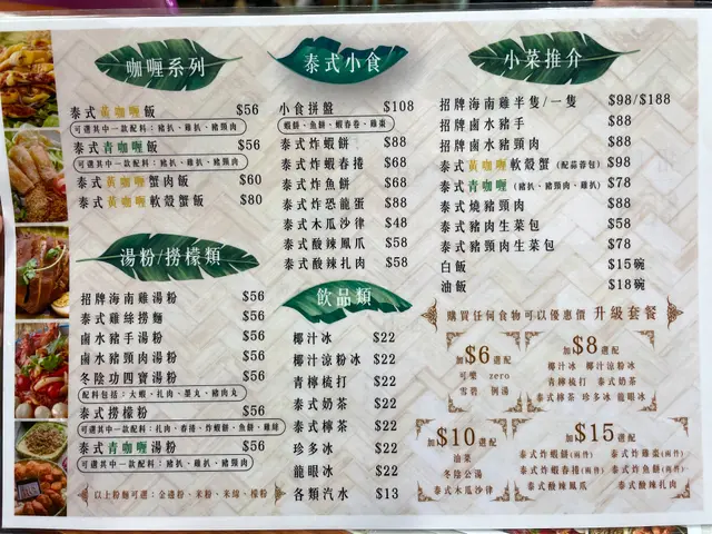 另外購買任何食物可以優惠價升級套餐,小食加$15、泰式特飲加$8