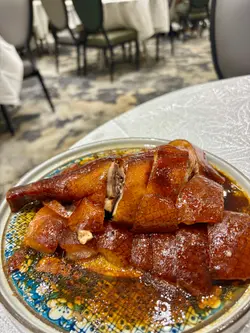 晚市堂食加一蚊送燒味,有乳鴿、雞同燒鵝揀,我哋揀咗燒鵝皇,冇諗過一蚊都有半碟份量咁大方,仲有隻鵝髀!皮脆肉嫩,鹹香適中,完全唔係應酬式送菜。