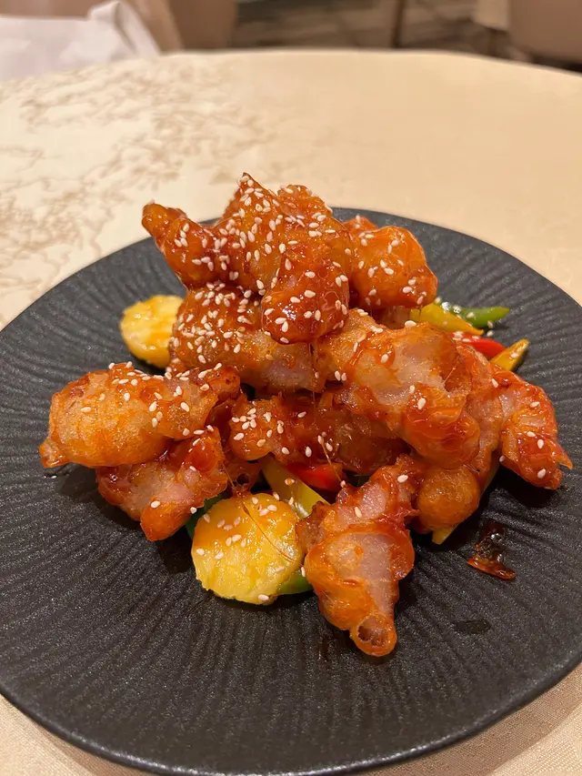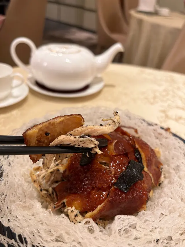 終於到咗月頭,可以同朋友食餐好嘅,知道灣仔駿景酒店有間餐館好出名,特登去試吓,交通尚算方便地鐵站一出行7分鐘就到,餐廳位於酒店裝修同埋格局都好有氣派,我哋被安排坐喺二人枱,之後我哋開始點餐,首先嗌咗黑松露手撕雞,開胃菜師傅把炸子雞撕開一條條,加上黑松露嘅香氣,簡直係冇得彈,之後有我最鍾意食嘅拔絲咕嚕肉,用咗麥芽糖去調甜味將咕嚕肉度包住,簡直係恰到好處,而且師傅將豬肉炸得好香脆,咬落去唔會太油膩,仲有炸蟹鉗,份量非常足夠,而且咬落去啖啖肉,亦都係今晚水準之一,最後點左安格斯牛肉炒飯,炒飯粒粒分明,加上安格斯牛肉配上師傅嘅醬汁簡直係冇得彈係我食過最好食嘅炒飯,加上用沙煱上菜令到炒飯更加香口,總括而言呢間餐廳水準服務都好高,下次可以再試吓其他菜式。