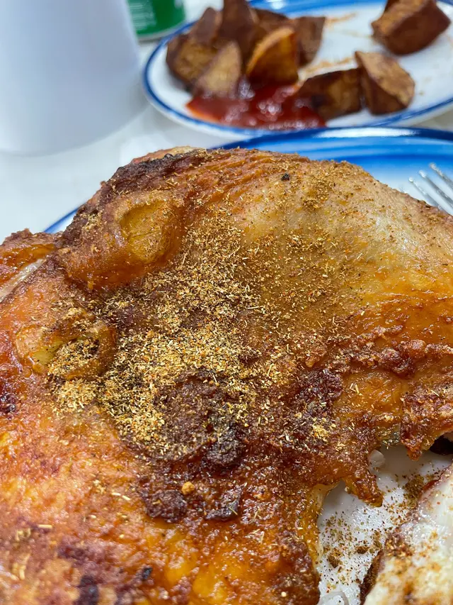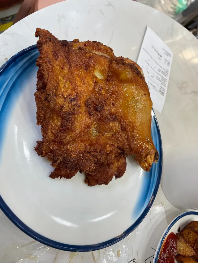 估唔到呢間除咗食炸雞脾外,仲有好多唔同嘅選擇,見到佢有豬膶薑米湯米粉,呢啲乍暖還寒嘅天氣啱晒嚟暖下身。叫咗一客,配上薯角。當然唔少得要叫雞髀,特別叫咗新疆辣味,希望可以暖一暖身!估唔到呢度仲有老火湯可以叫,有杏汁豬肚湯,梗係叫過嚟滋潤下啦。雞髀先上枱,嘩!真係好好好好大隻呀!熱辣辣㗎 !不過店員唔記得咗幫我落辣粉,佢哋好快好細心同即刻同我加返辣粉上去,隻雞比即刻野味晒!雞皮吹卜卜,肉汁鮮嫩,雞髀真係超級大隻,勁香口!一個人真係食唔晒,好彩我同朋友一齊嚟。薑米湯豬潤米粉係極其好味,嗰薑米湯我忍唔住要飲晒,因為實在太鮮甜啦!