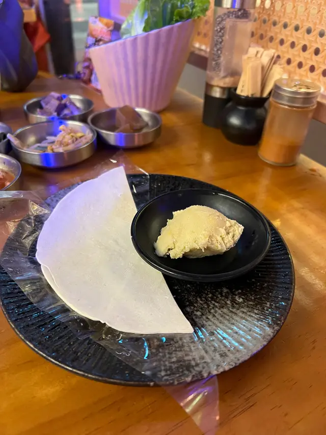 今次嘅榴槤燒肉放題主打馬來西亞D24貓山王榴槤,果肉軟綿,香氣濃郁但唔會過膩,單點已經好滿足。特色菜式係榴槤薄餅,薄餅烤到微軟,夾雜榴槤雪糕,將薄餅輕輕燒軟加上半溶的雪糕,冰涼同溫熱嘅口感交錯,非常新奇。