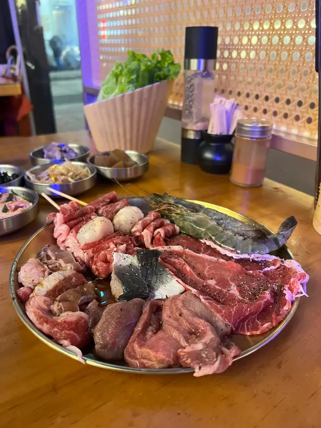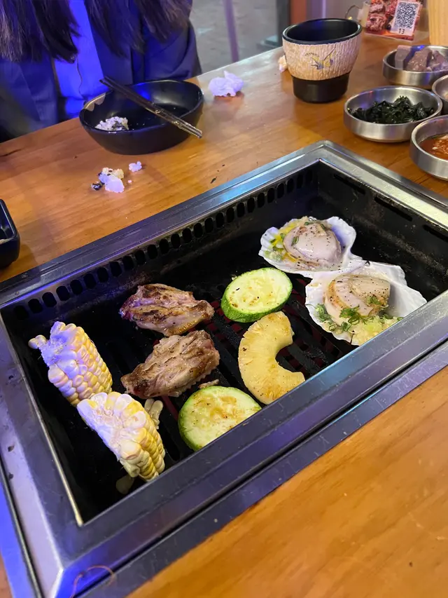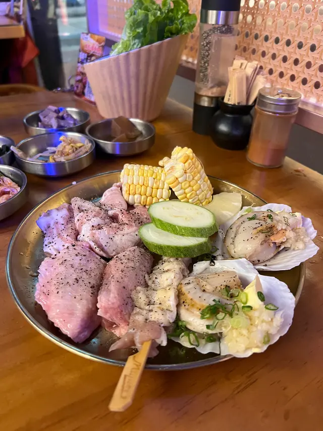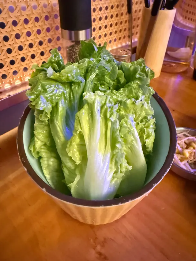 肉類選擇多,有豬、牛、雞多部位都有。當中個人推介牛舌心。牛舌彈牙,本身醃咗鹽同埋黑椒,簡單又好味。雞翼醃製入味,燒起來香氣十足。生菜包燒肉係另一亮點,生菜新鮮翠綠,爽脆帶甜,包住燒肉食,解膩又健康。