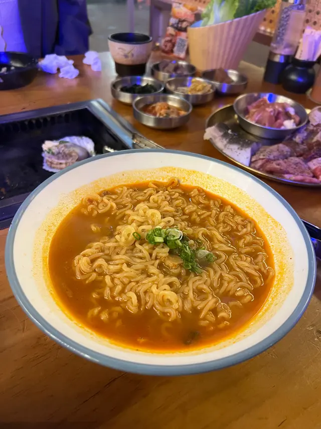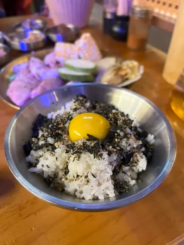 食韓國嘢,點少得辛辣麵。辛辣麵湯底香辣,友人就喜歡爬生蛋伴飯,兩者簡單但有效中和肉類嘅油膩感。