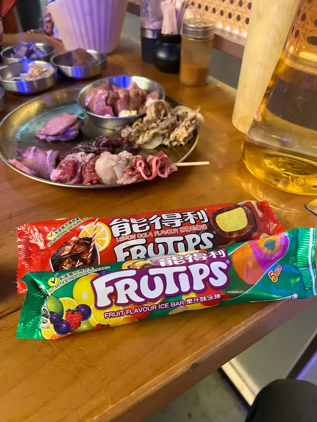 另外飲品汽水、酒精飲品一應俱全。清酒入口順滑,帶米香,配燒肉好夾;梅酒酸甜清新,特別同榴槤薄餅一齊試,果香互相提升,味道好match。仲有紅酒、白酒同啤酒,無酒精飲品如烏龍茶同汽水齊備,滿足唔同口味嘅需要。飲品選擇多,搭配燒肉同榴槤菜式都好合適。食到好飽但一定要試試能得利果汁糖味既雪條,兒時既味道返曬嚟呀!