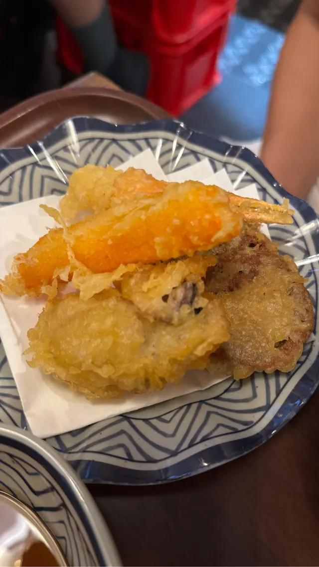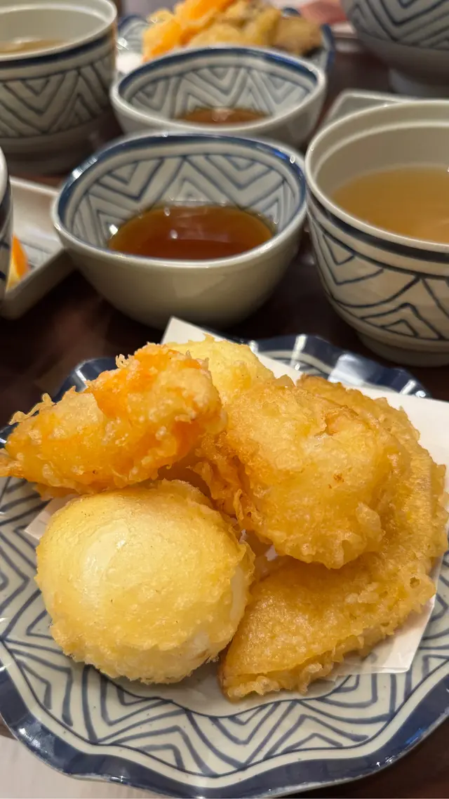 烏冬滑溜彈牙,配咗鰹魚湯底,好好食。每款天婦羅炸得啱啱好,全部都係即炸即食,正❤️🔥 今次試咗4款餸,松葉蟹鉗鮮甜,廣島蠔大隻多汁,牛肉餅肉香濃郁,全部都係即炸即食,熱辣辣最正🔥
