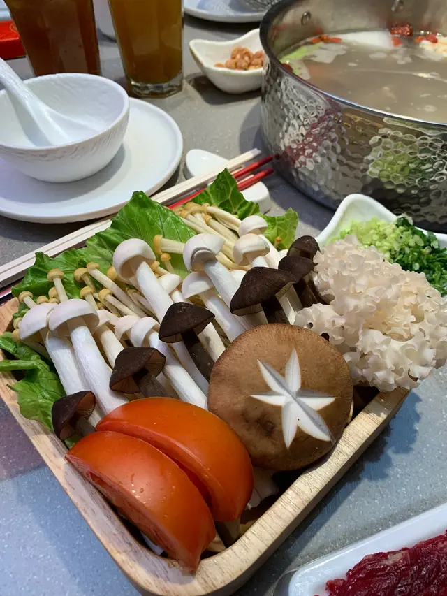 開餐啦!先嚟一個原味牛骨湯底,清清地又有好香濃嘅牛骨味,新鮮手切肥牛同埋精品雪花牛,口感一流,牛肉味香濃夠晒新鮮,再食個手打牛丸,爽口彈牙好有牛香味。鮮活九節蝦,味道鮮甜爽口好新鮮。特色菌菇拼盤,一睇就知夠晒新鮮仲加多碟潮汕純米粿條口感嫩滑。