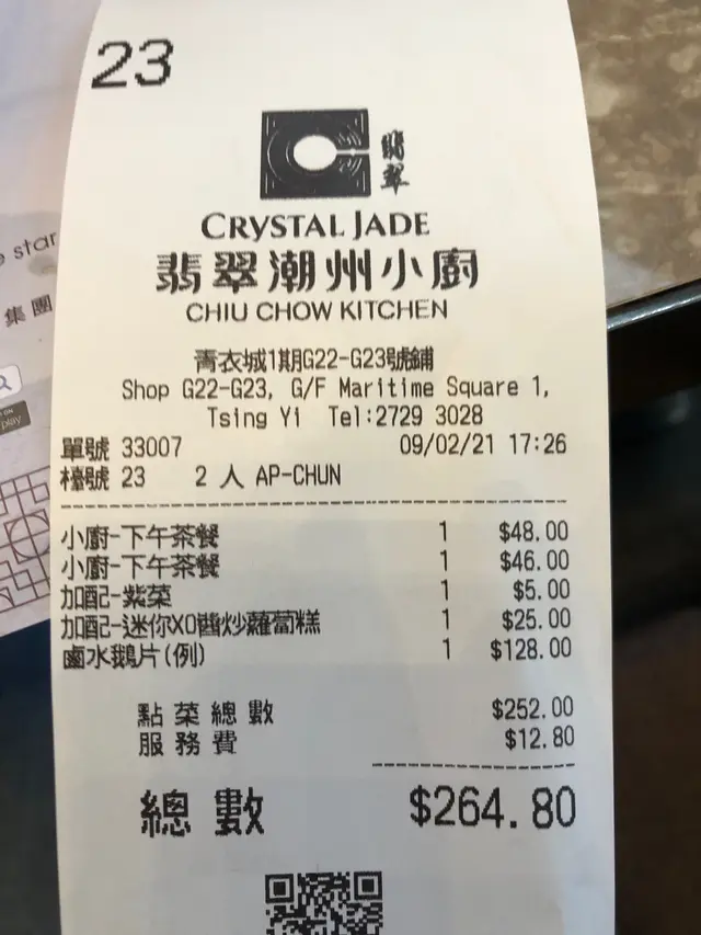 之前看見青衣城有潮州菜,疫情期間人流比較少,而且下午茶時段價格似乎比較優惠,便試試看。然而餐廳內一些靠海濱公園的位置因為海濱公園有人吸煙,所以會比較大煙味,個人對煙味特別敏感,亦不喜歡二手煙,但當時餐廳內離海濱較遠的位置多數已有客人,我們便想在餘下未有人坐的位置中選擇離海濱較遠的位置,但雖然仍有很多位,職員卻只允許我們坐某幾枱,個人對這樣的做法不太理解亦非常失望。