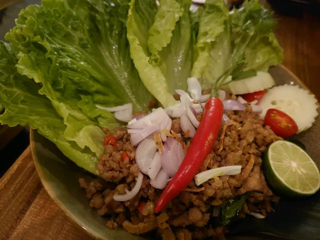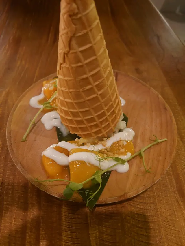 豬肉生菜包,豬肉醃得好入味, 而且其他配料好足夠例如有洋蔥(唔腥), 車厘茄, 九層塔,青瓜, 包埋 炒好嘅豬肉粒生菜一齊食, 簡直絕配, 之後再嘆返個芒果糯米飯甜筒, 飲埋杯 特色雜果whisky