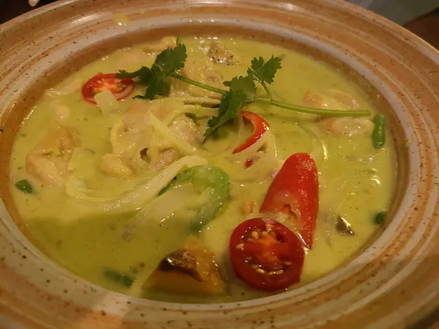 , 青咖哩 個奶油味好香, 好creamy, 再埋少少辣嘅咖喱, 再用薄餅夾住雞同咖哩一齊食,真係唔錯