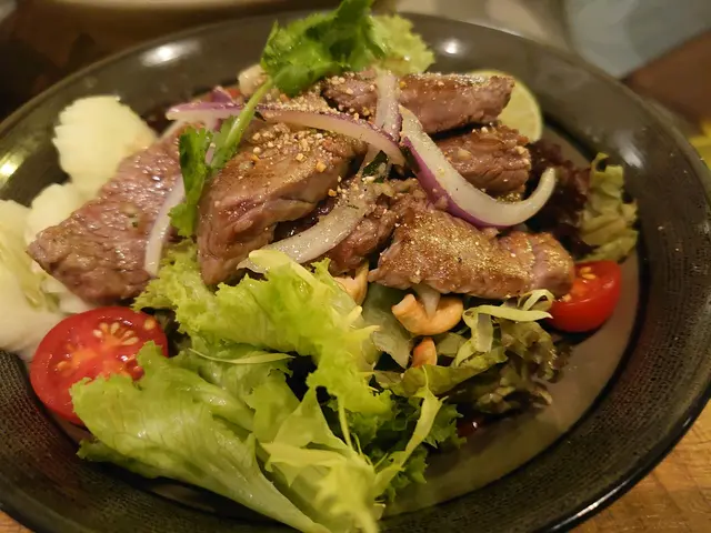 嚟到尖沙咀一間環境不錯的泰國餐廳, 兩個人去叫咗個冬陰功海鮮湯, 泰式燒牛肉沙律 ,青咖喱雞加薄餅, 豬肉生菜包, 芒果糯米飯甜筒, 一杯特色whisky, 冬陰功海鮮湯 配料足夠, 有蝦, 蘑菇車厘茄, 燒牛肉沙律, 牛肉燒到半生熟, 好淋,唔會起筋,再配埋甜甜酸酸嘅沙律, 好味