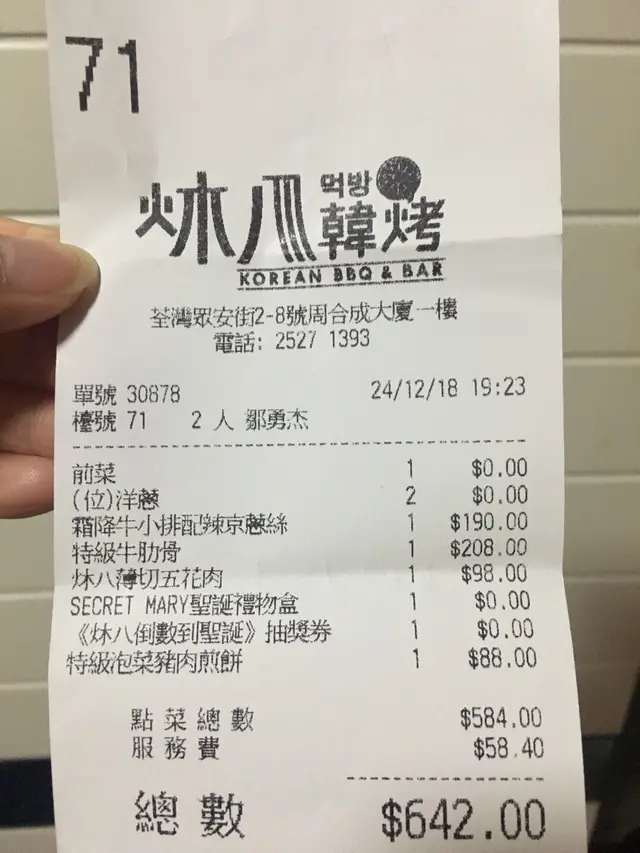 最後好努力食都係食剩半碟泡菜餅拎走左,埋單都$642⋯ 味道係唔錯既⋯真係唔太抵食而且又受氣😑