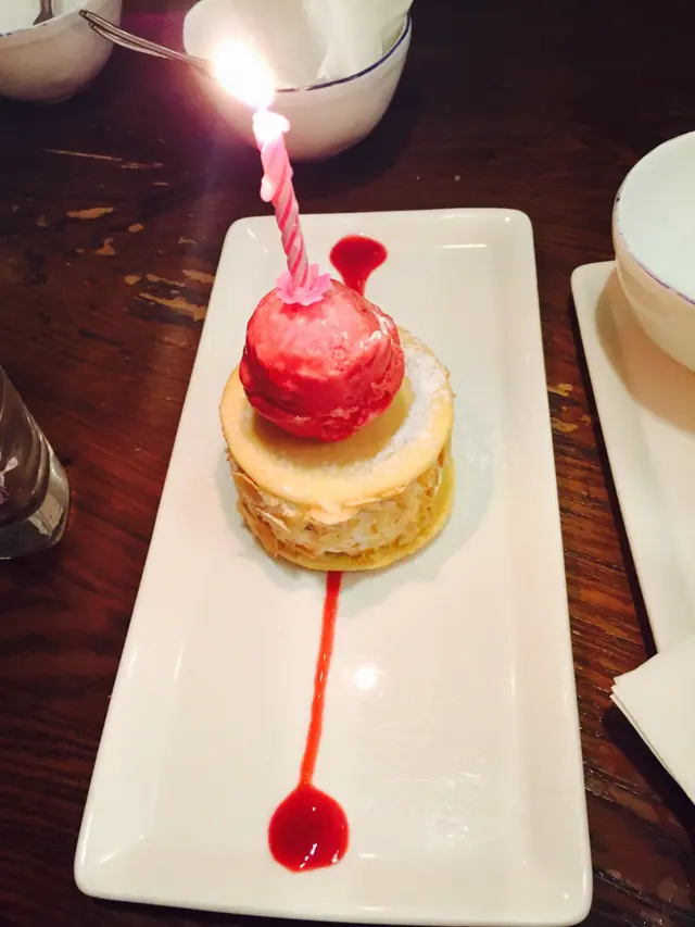 French Kiss-是的, 小妹生日, 可以叫佢加焟燭!聽個名係咪好有意思呢? 其實佢上面係好酸既rasberry sorbet, 兩塊餅乾入面夾住既係充滿杏仁碎既雪糕, 幾樣夾埋一齊食係好食既!