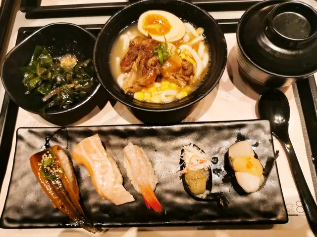 我要左set壽司連一個迷你豬頸肉烏冬。