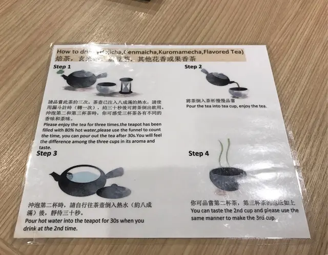跟着主食來的煎茶和培茶,都是盤內跟一個茶杯、一個茶壺及一個漏斗,感覺上真的覺得這店對沖茶的要求很高,而且茶品也很精緻。沖茶前,都需要看看指示,先將滾水到進茶壺內,然後反轉漏斗,讓流沙又頂倒到底,大約30秒左右,就可以將茶壺的茶倒進杯子裏,沖出來的茶便會恰到好處,不會因茶包泡浸得太耐,而帶有苦澀味。