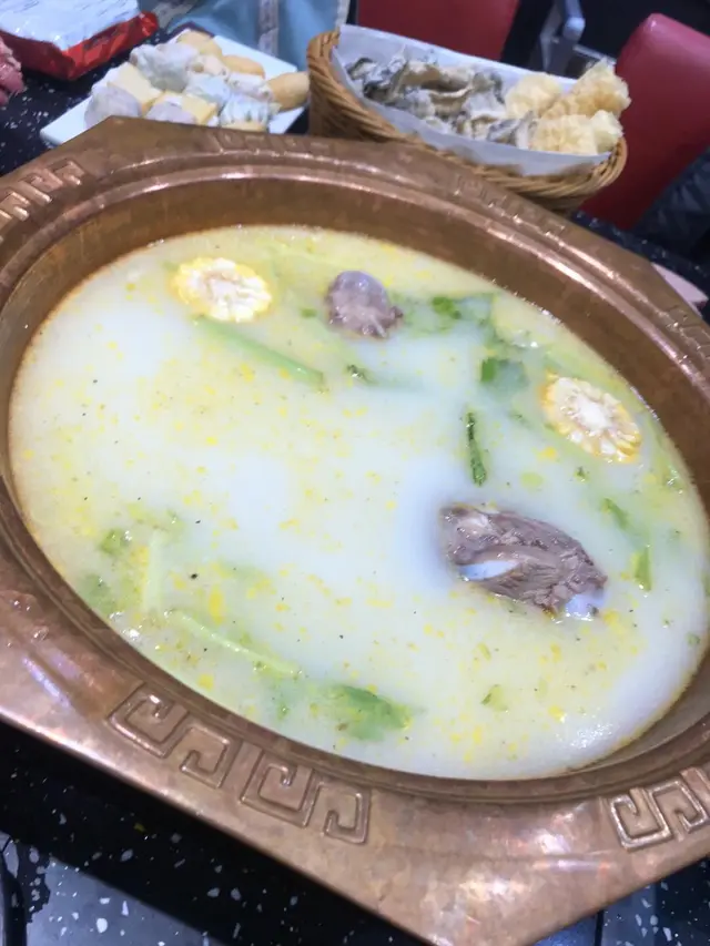 雞煲後好潤!上哂呢啲就有得打邊爐啦。我地就揀左3.6牛乳豬骨煲,一黎到就見到好大舊豬骨!跟住就有海鮮配料同埋冇得任食既牛頸脊。牛頸脊真係好好味!另外值得推薦既係好脆既魚皮同埋非常足料既墨魚滑。
